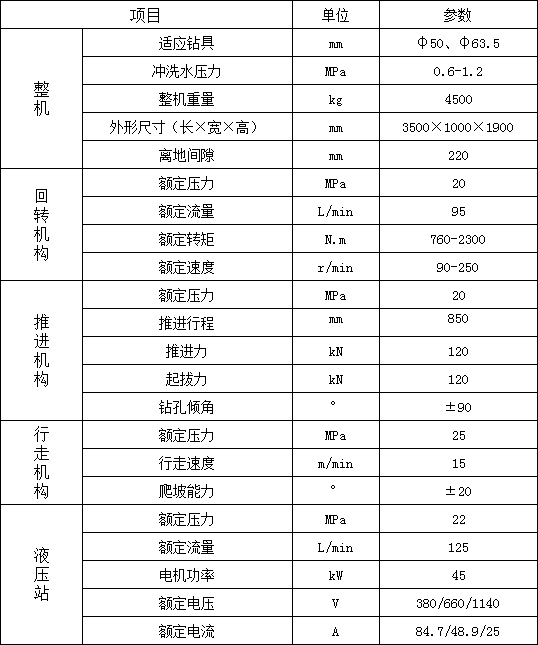 1. 履帶行走,大大提高移鉆、穩(wěn)鉆的效率,顯著減輕工人的體力勞動強度;